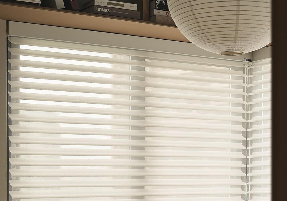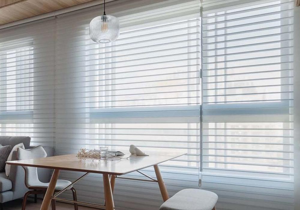 Las Persianas Shangri-La son una sinfonía de luz filtrada y vistas veladas. Sus franjas de tela alternas te permiten transitar suavemente de una luz difusa a una privacidad total, creando un ambiente mágico y sofisticado. Es la suavidad de una cortina con la funcionalidad de una persiana.